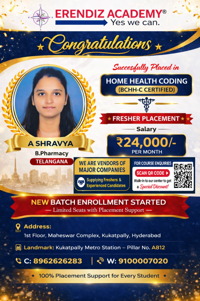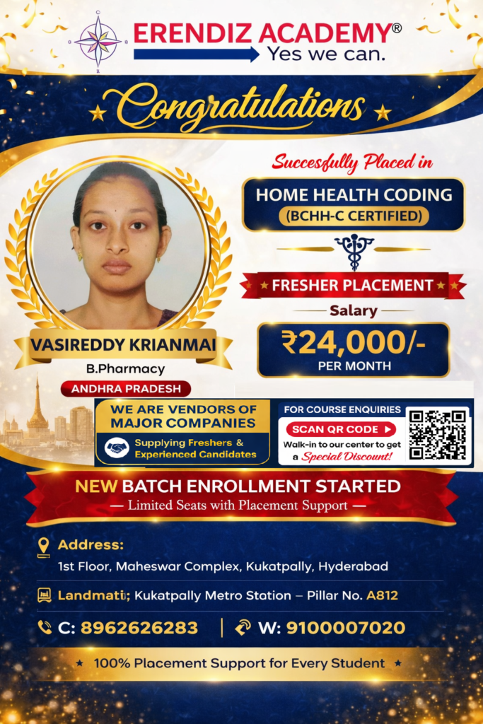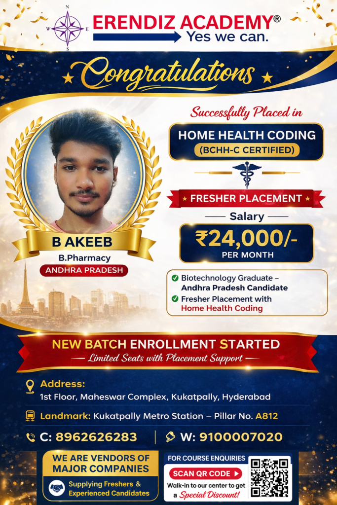 We at Erendiz Academy also provide Home Health ( BCHH-C & COQS ) Medical Coding training with Placements.